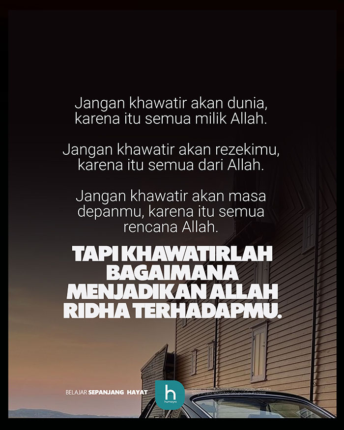 Jika Allah ridha padamu, maka dunia dan akhirat akan menjadi milikmu.